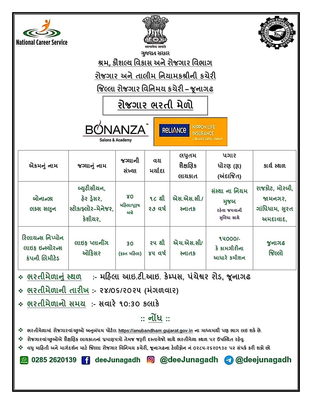 | સંસ્થા/વિભાગનું નામ | જૂનાગઢ કૌશલ્ય વિકાસ અને રોજગાર વિભાગ |